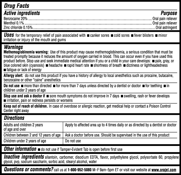 Orajel™ Gel 3X Medicado para las Aftas y otras Llagas Bucales proporciona alivio instantáneo del dolor por úlceras bucales, herpes labial e irritación de las encías, así como mordidas en las mejillas e irritación causadas por uso de dentaduras o aparatos de ortodoncia.